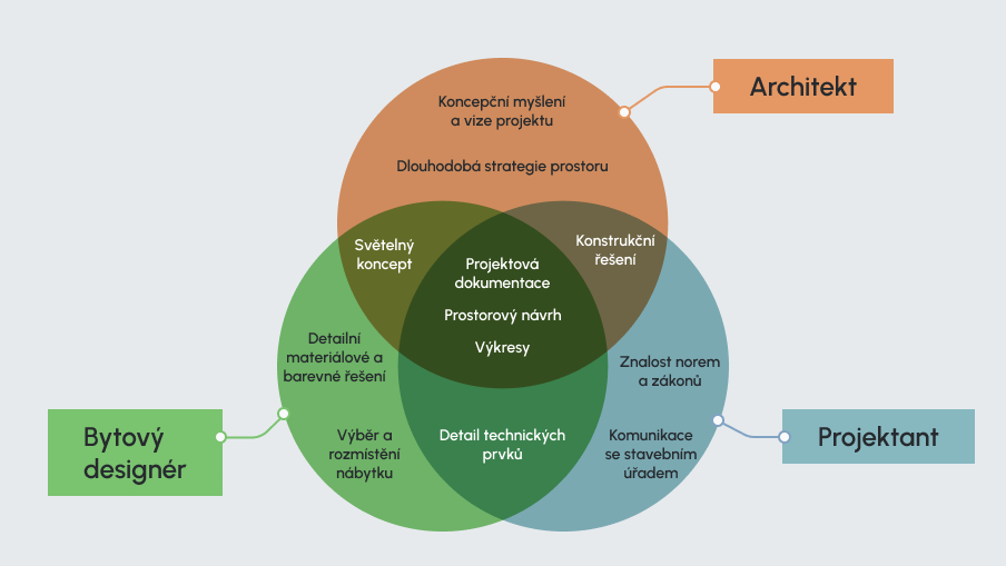 „Tak… a teď potřebuju architekta? Nebo projektanta? A není to vlastně totéž co bytový designér?“