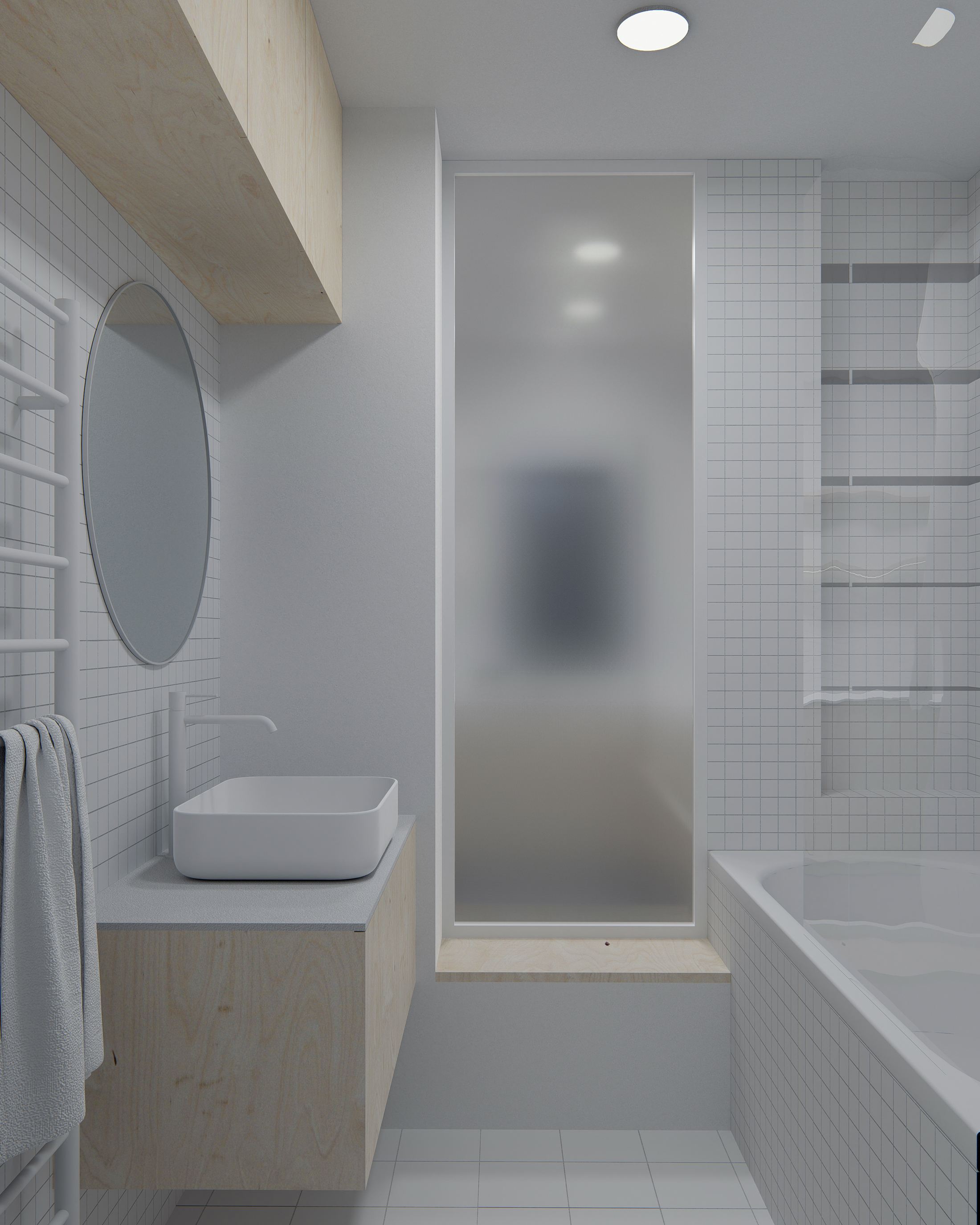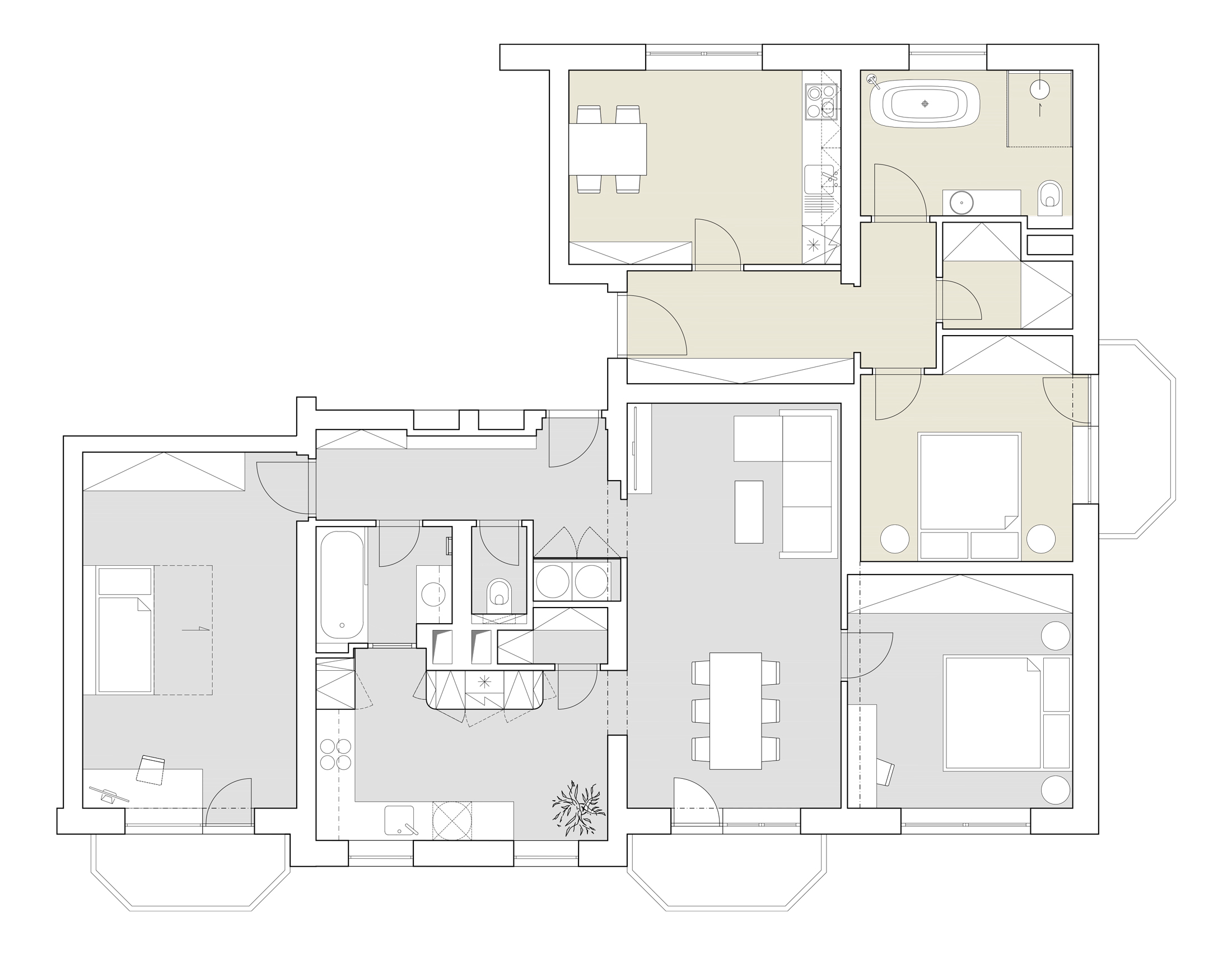 V tomto konkrétním případě se jednalo o návrh rozdělení velkého bytu na dva menší. Byla to spíše projekční záležitost, přesto jsme si i zde našli potěšení v podobě návrhu kuchyně a koupelny pro jednu bytovou jednotku.