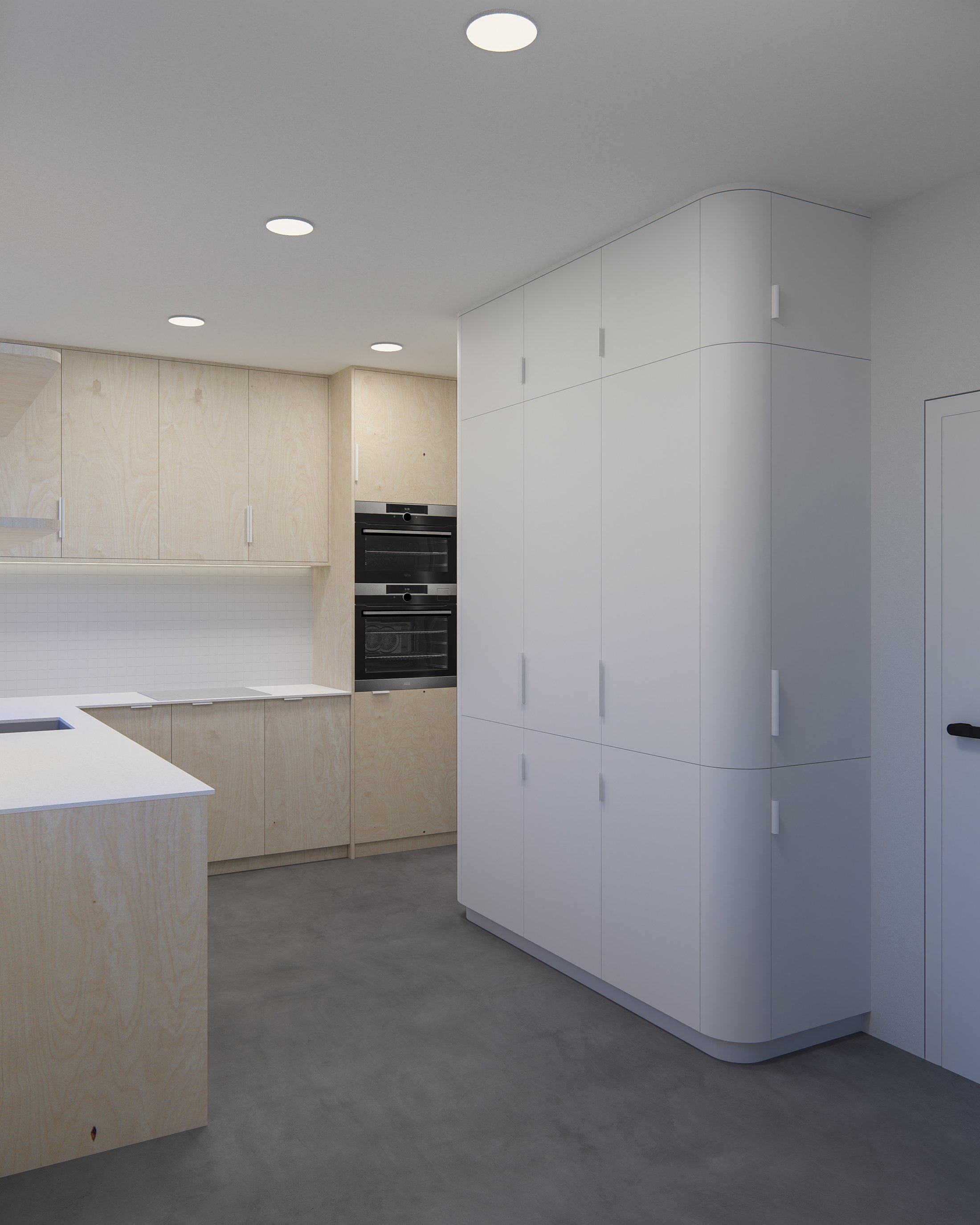Někdy se ovšem stane, že nejsme schopni vybrat jen jednu jedinou nejlepší variantu a předložíme dvě různá řešení. Jedno třeba více konzervativní a druhé opravdu odvážné, kdy například v kuchyni vybouráváme otvor, kterým dostáváme světlo do koupelny uprostřed dispozice. Vždy nás potěší, když se náš klient odváže a začne s námi nad projektem uvažovat netradičně a nezůstane uzavřený v konvenčních představách o tom, jak má co vypadat. Posouvat svoje i hranice projektu nás na naší práci velmi baví.