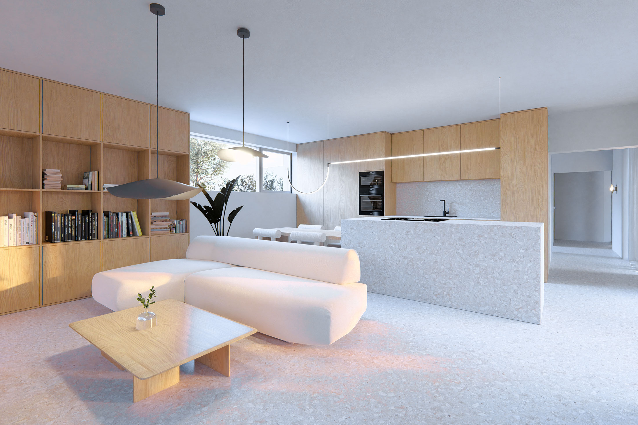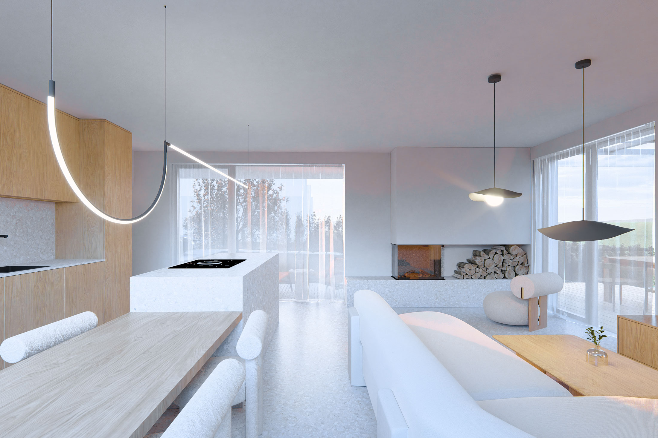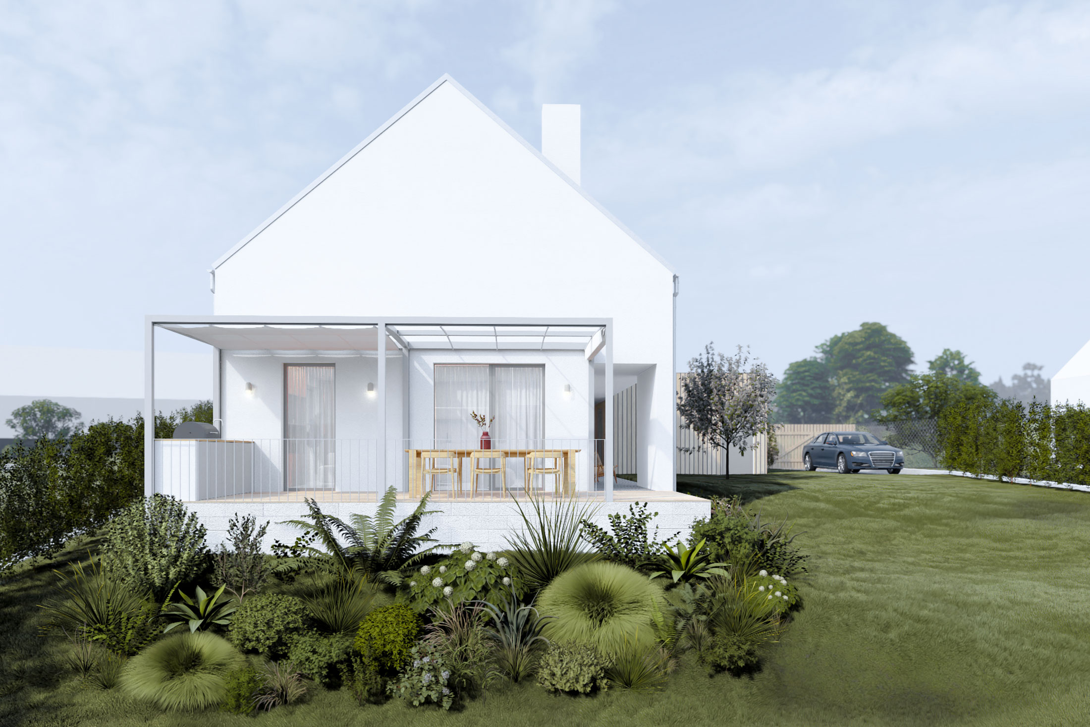 Vnitřní dispozice domu je ovlivněna přáním mladé rodiny mít možnost v budoucnu dům rozdělit a používat jej jako dvougenerační. Malým stavebním zásahem bude mít každá bytová jednotka vlastní vstup a část nevyužívané půdy se promění v obývací pokoj s kuchyní a jídelnou. Tento projekt je příkladem moderního bydlení, které ctí tradice a estetiku venkovského života, a zároveň vytváří příjemné a funkční prostředí pro rodinný život.