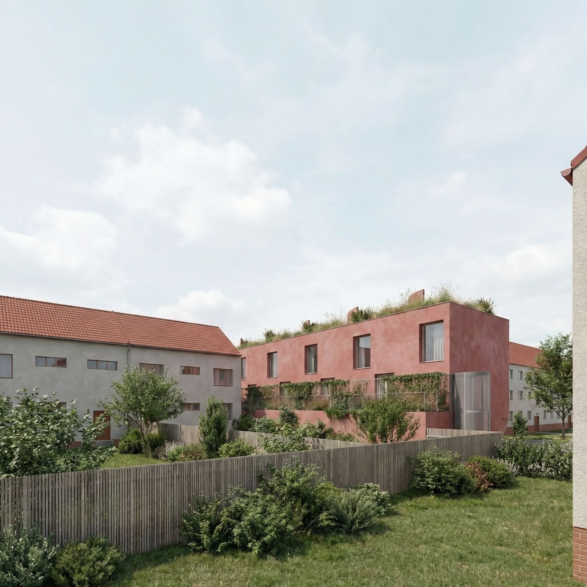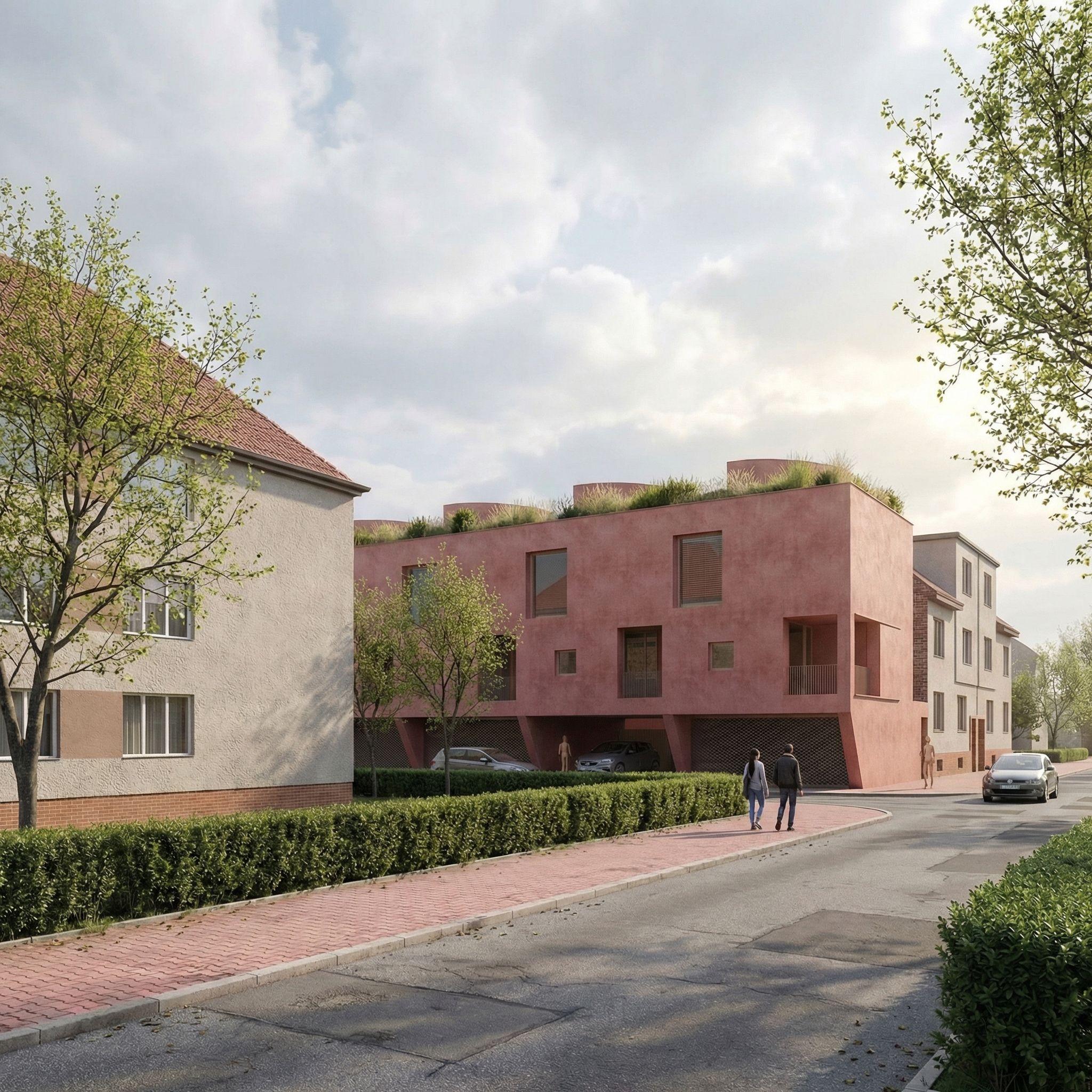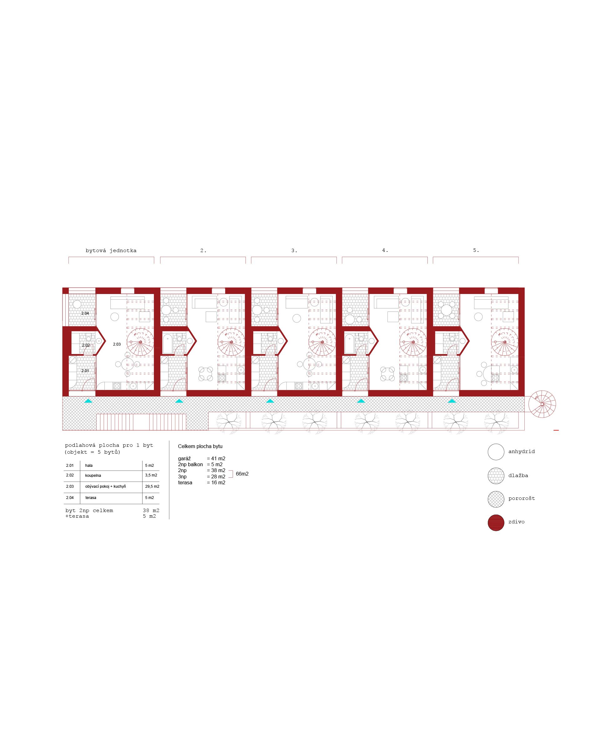 Nárožní bytový dům o 5 loftových bytech se střešní terasou.