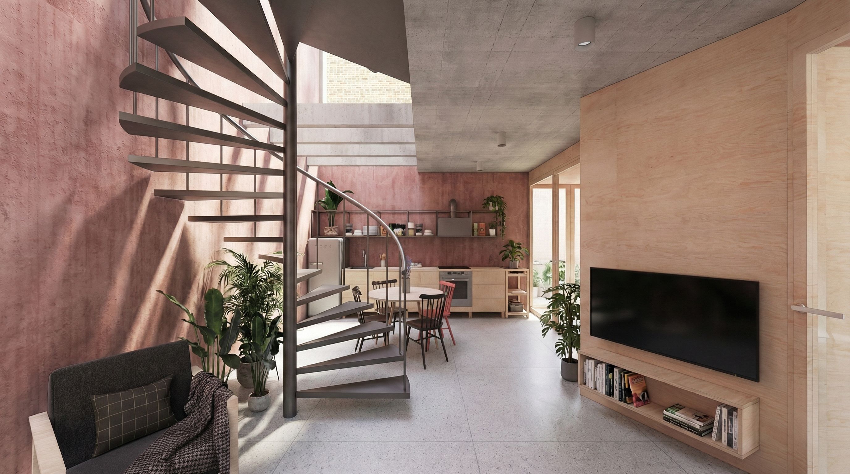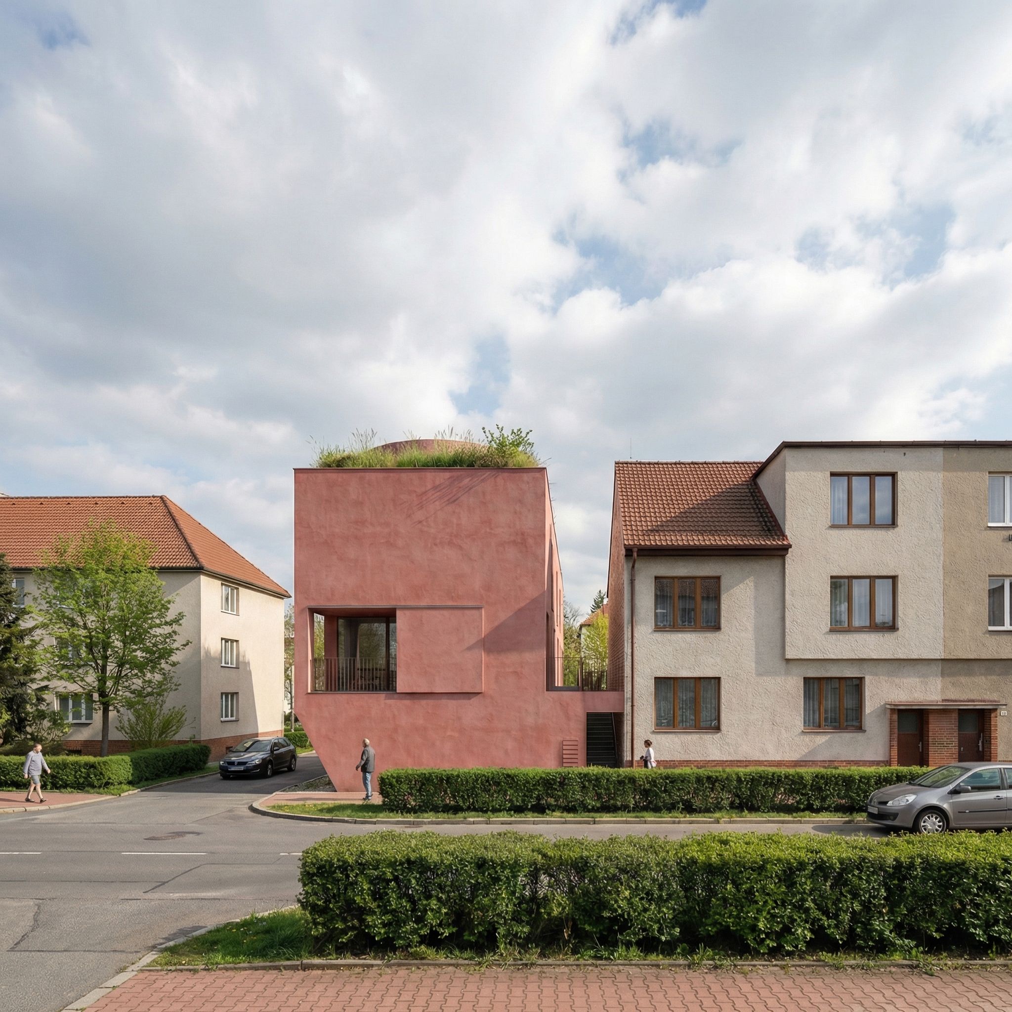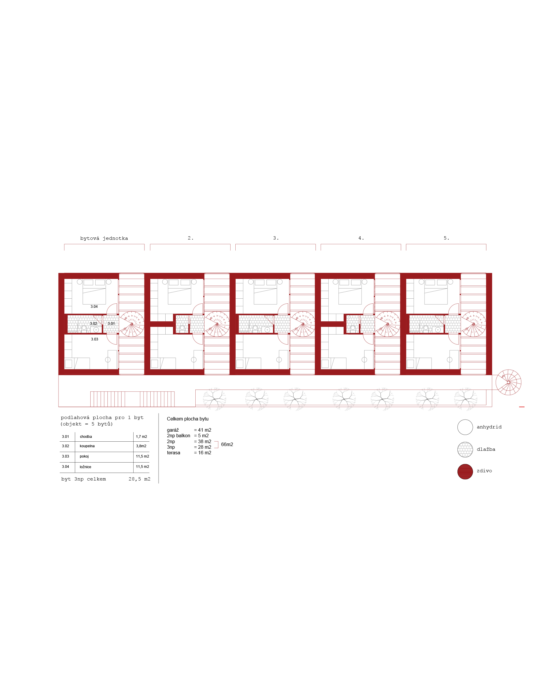 Nárožní bytový dům o 5 loftových bytech se střešní terasou.