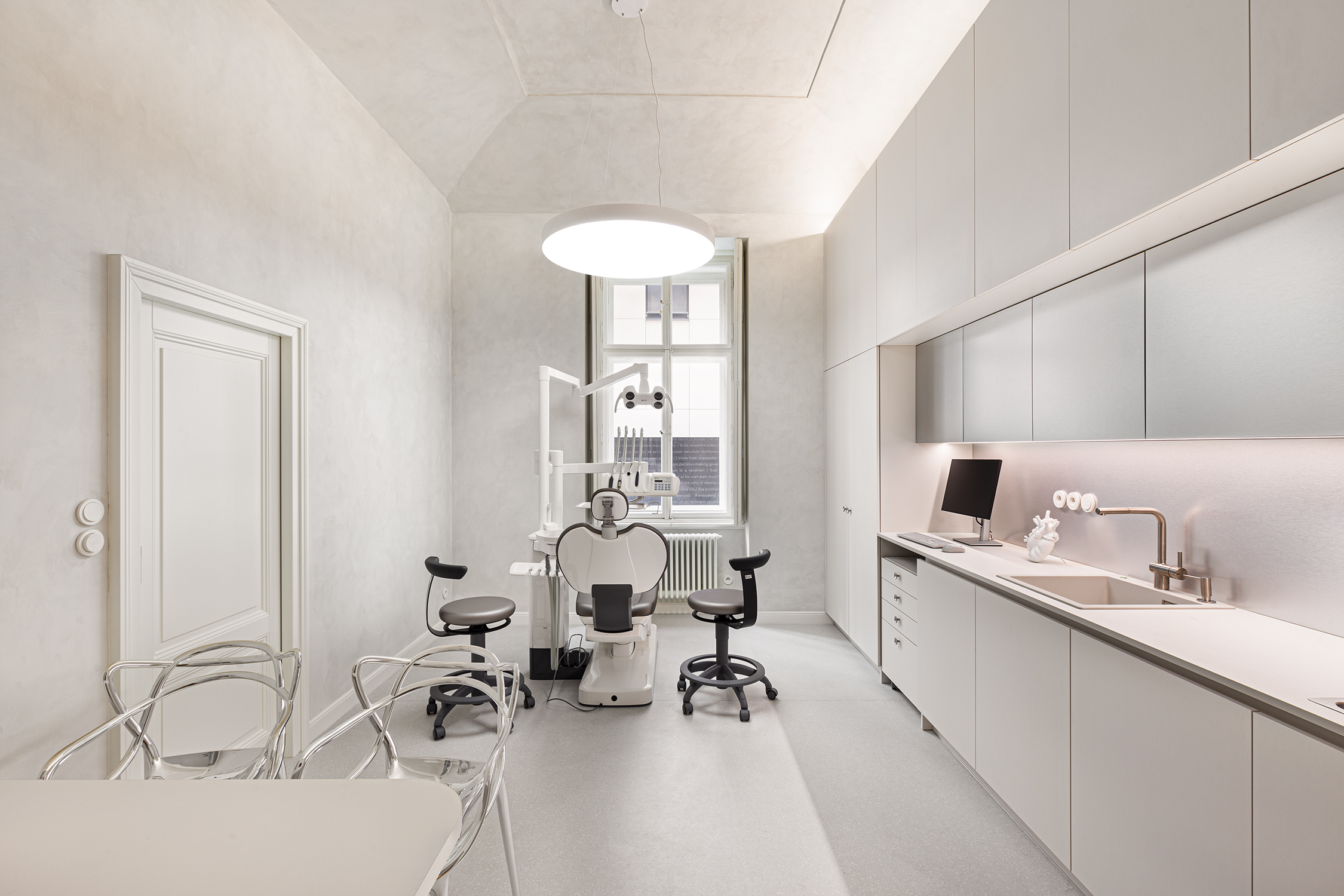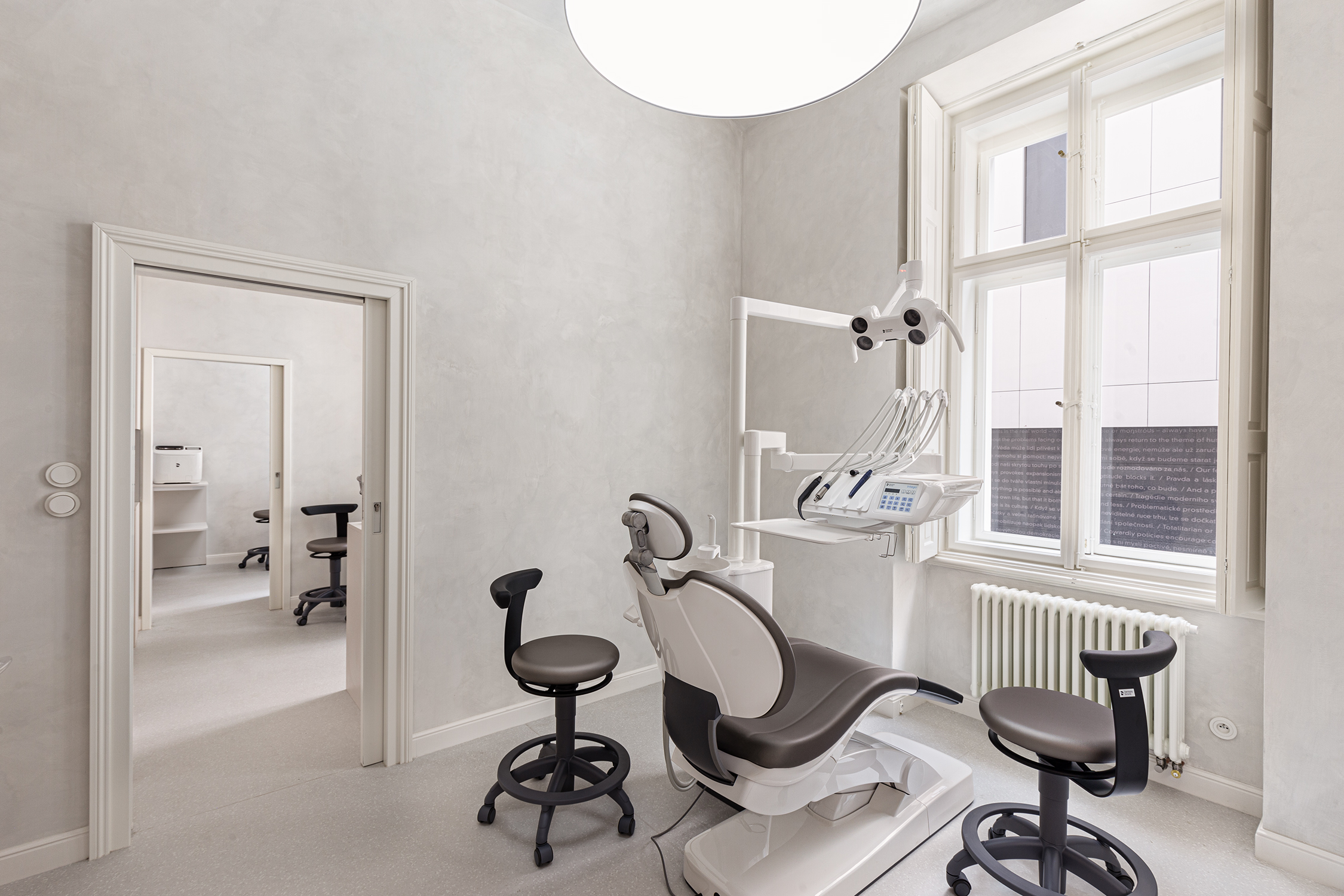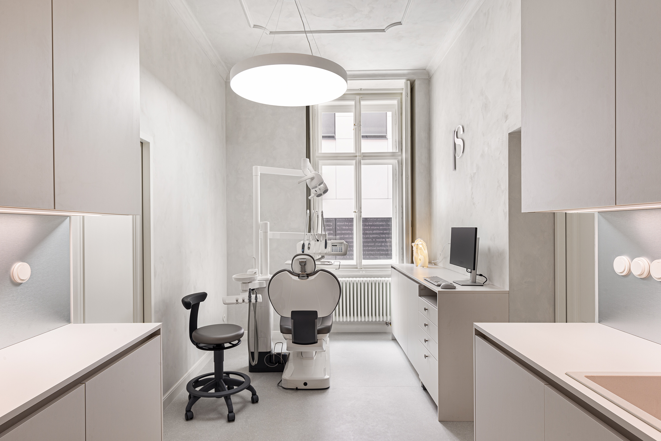 K realizaci nové zubní ordinace jsme se snažili přistoupit s respektem ke geniu loci místa Prahy 1, ale zároveň dodržet současné nároky pro takováto zdravotní zařízení.