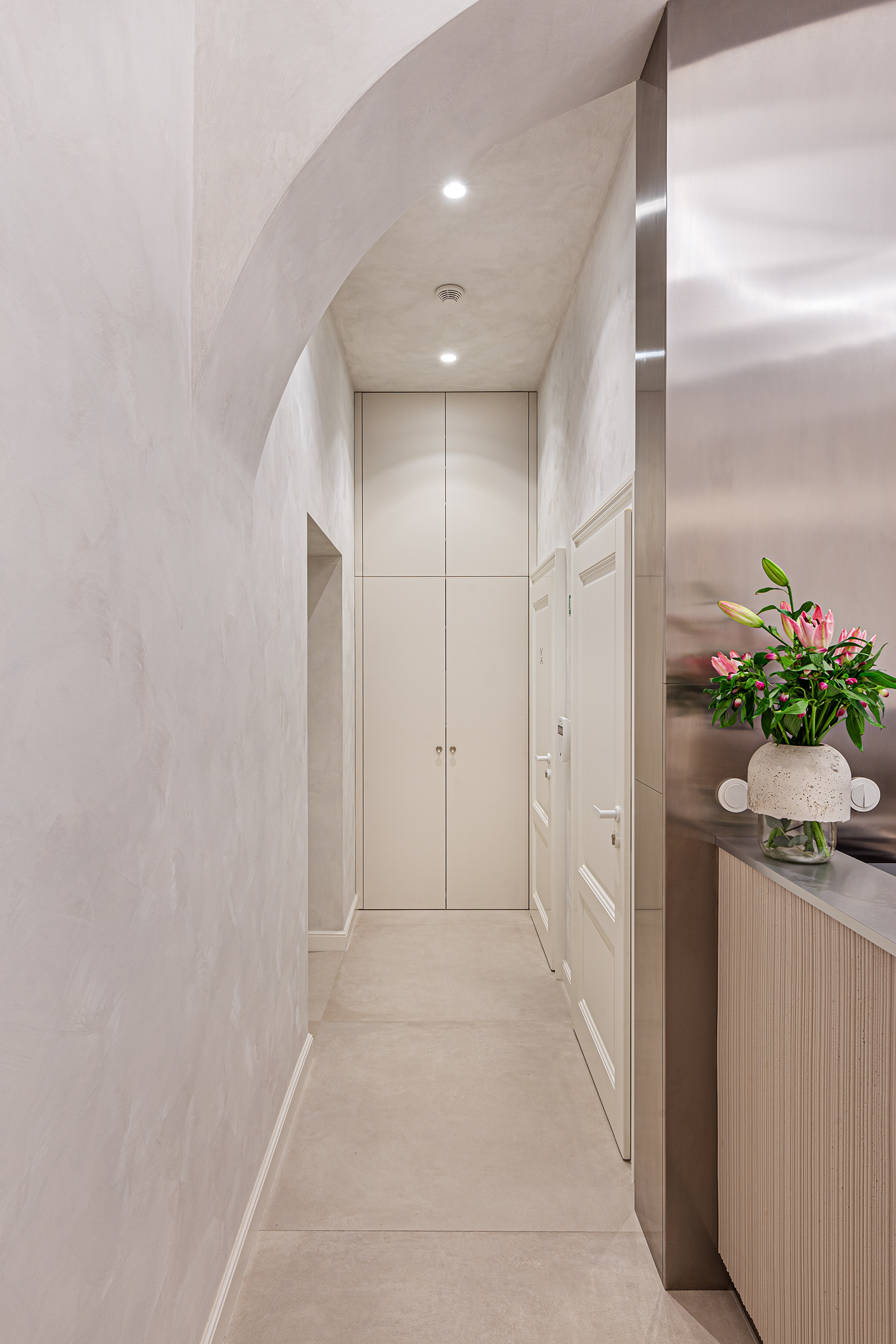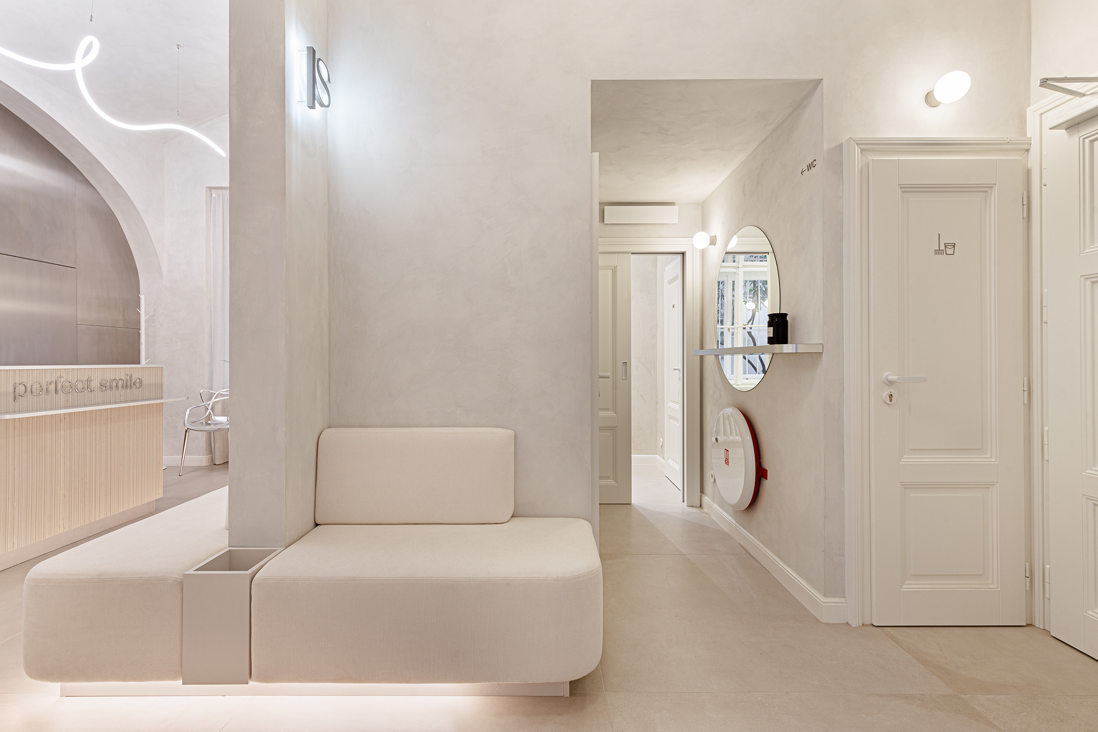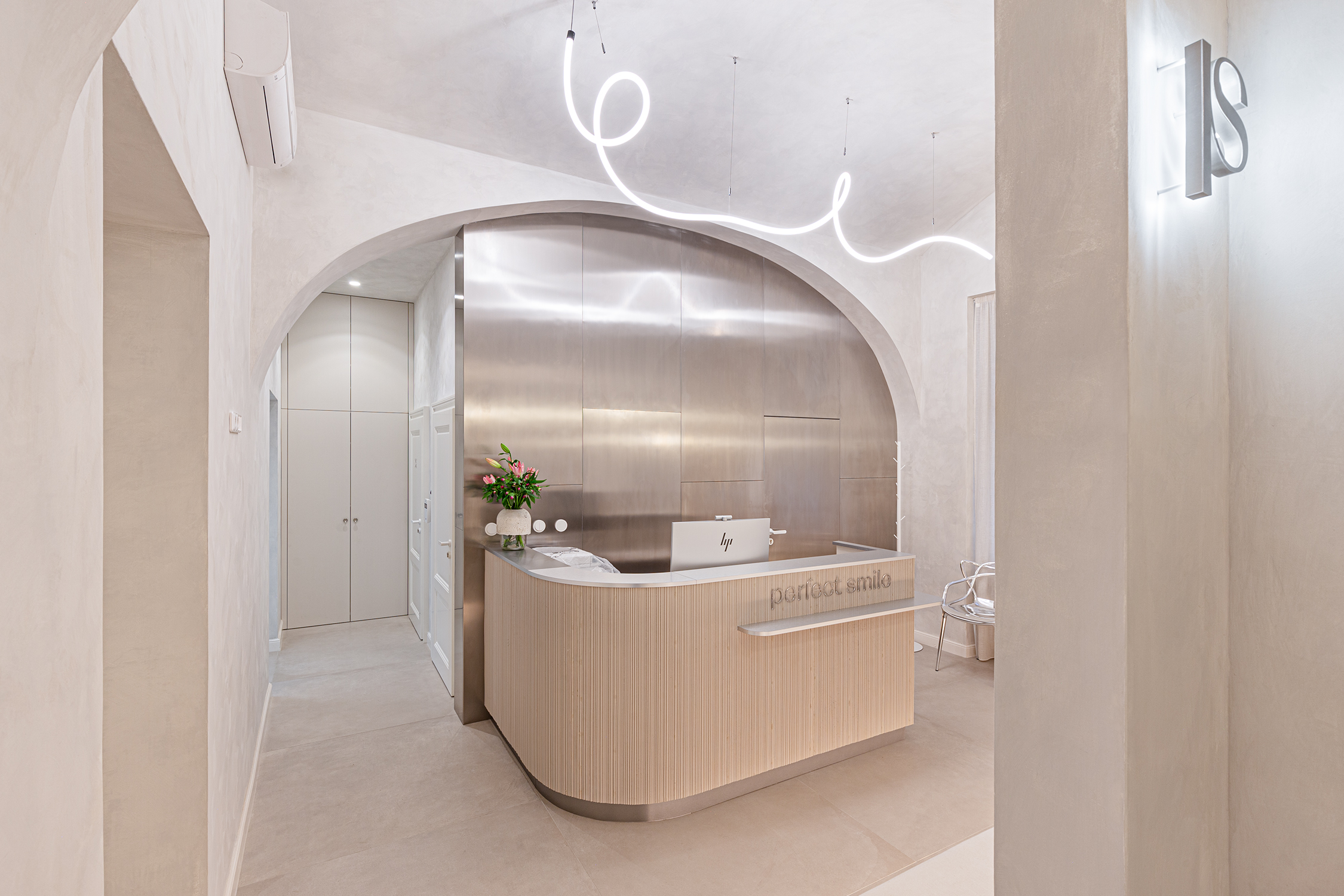 K realizaci nové zubní ordinace jsme se snažili přistoupit s respektem ke geniu loci místa Prahy 1, ale zároveň dodržet současné nároky pro takováto zdravotní zařízení.