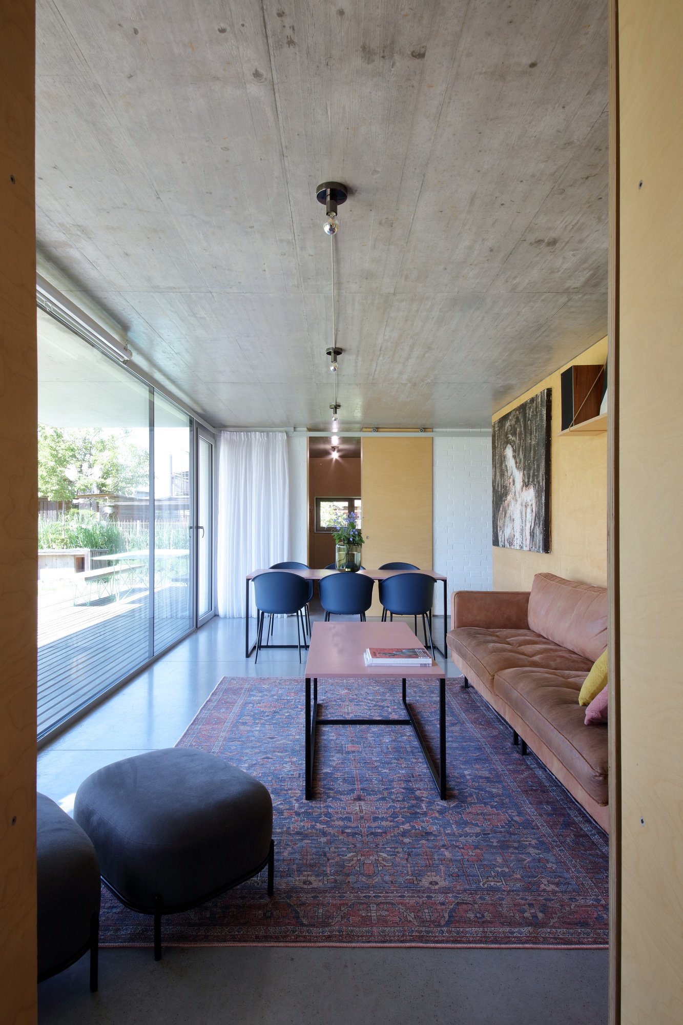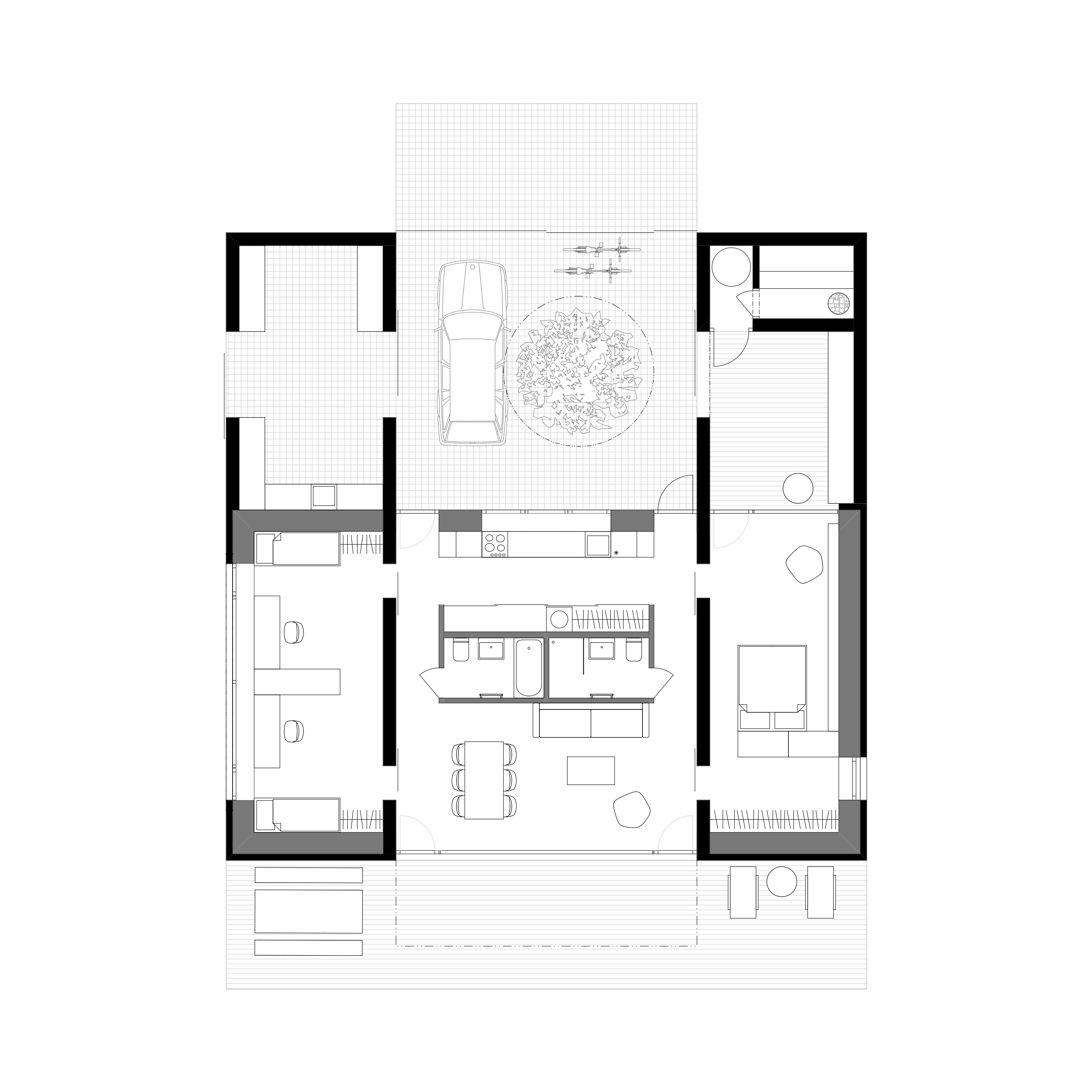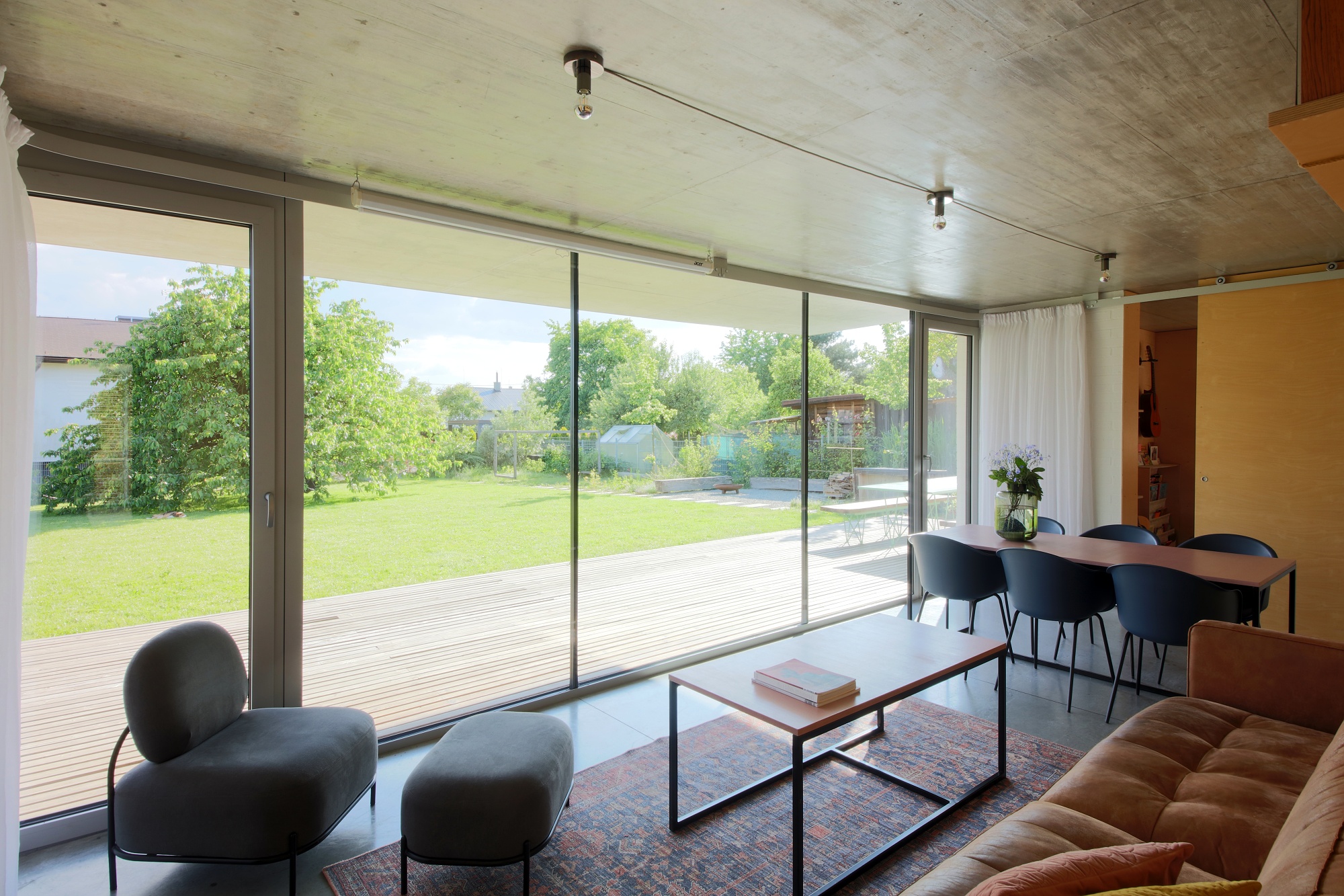Dům pro dva architekty a jejich děti, dům pro nás. Na místě cihlového domu po praprababičce. Nenáročný na metry čtverečné a technologie. Náročný na kompaktnost, jednoduché hmoty a přiznané materiály.