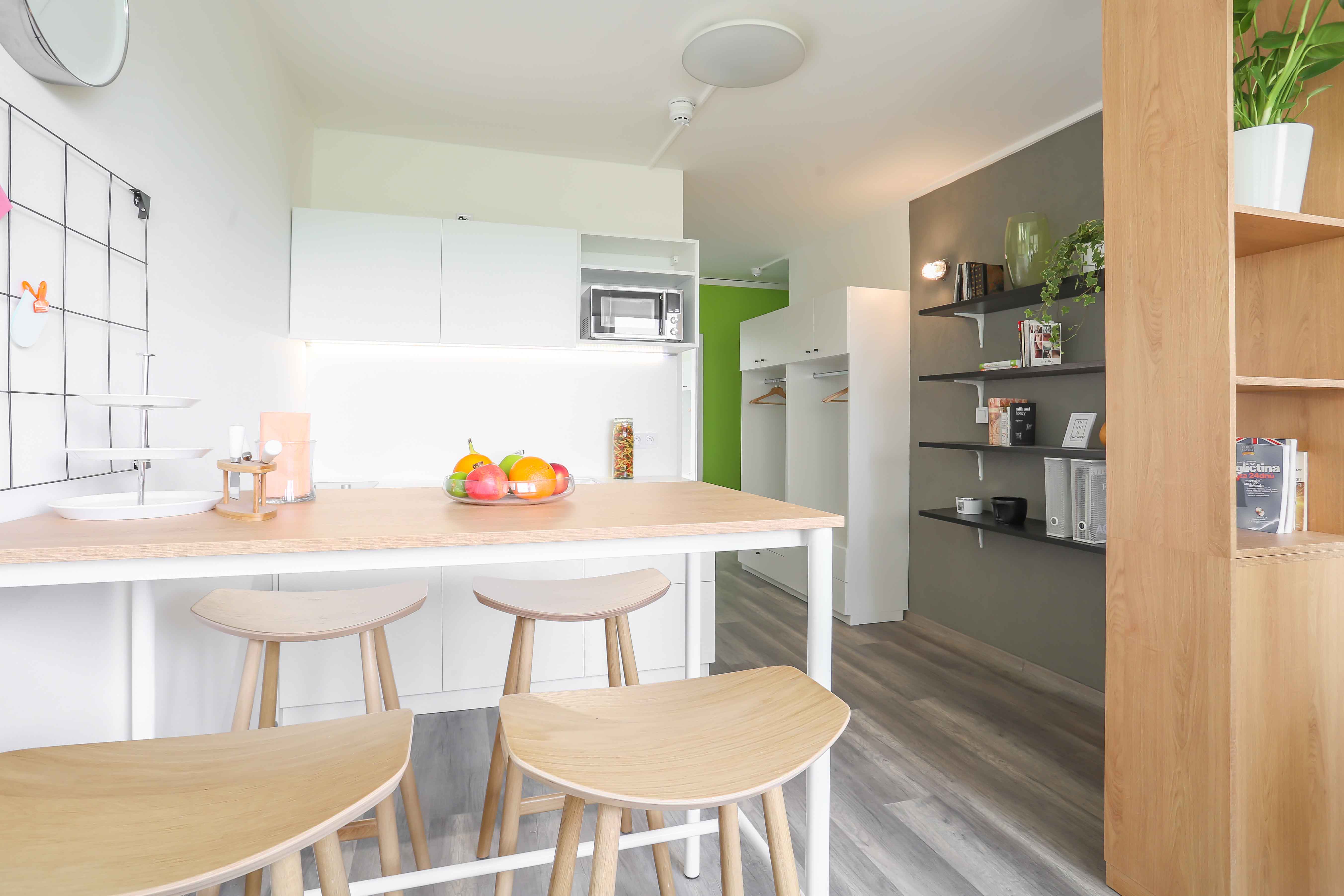 Projekt Studentské bydlení LUNA představuje komplexní obytné řešení navržené pro mladé obyvatele s důrazem na komfort a komunitní prostory. Ateliér připravil interiéry pro 230 samostatných bytových jednotek, z nichž každá disponuje vlastními kuchyňskými a hygienickými zařízeními, čímž je zabezpečen nezávislý životní styl studentů. Přízemní společné prostory jsou koncipovány jako multifunkční zóna inspirovaná dynamickými tvary, kde najde své místo coworkingová sekce, neformální posezení i relaxační zóny s výraznými světelnými tubusy, které prosvětlují celý prostor a posilují jeho otevřenou atmosféru. Projekt rovněž vytváří přátelské prostředí podporující sdílení a setkávání uživatelů.