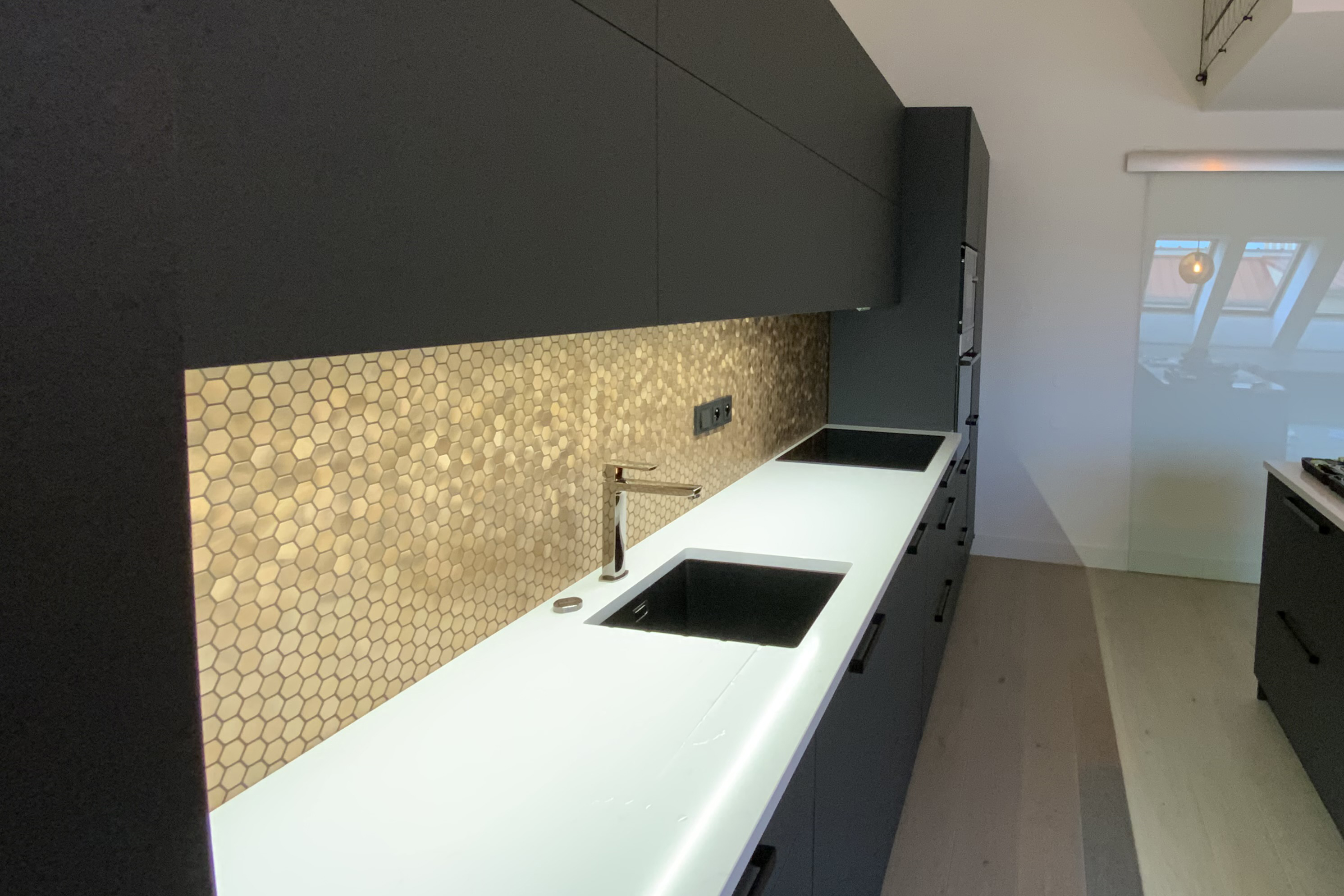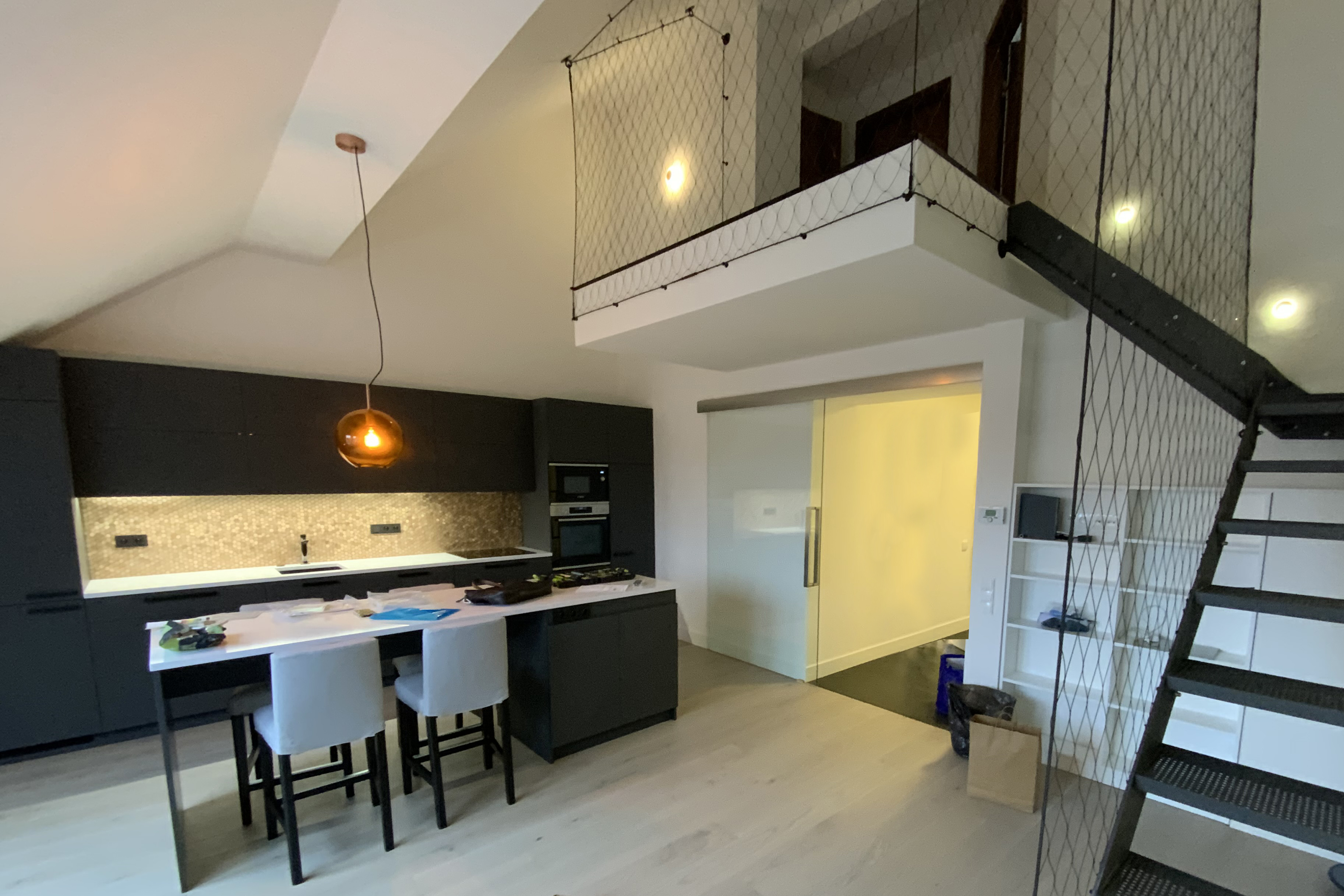 Podkrovní byt byl už v době před návrhem po rekonstrukci, klient si však přál vylepšit dispozici, interiér i střešní terasu.
