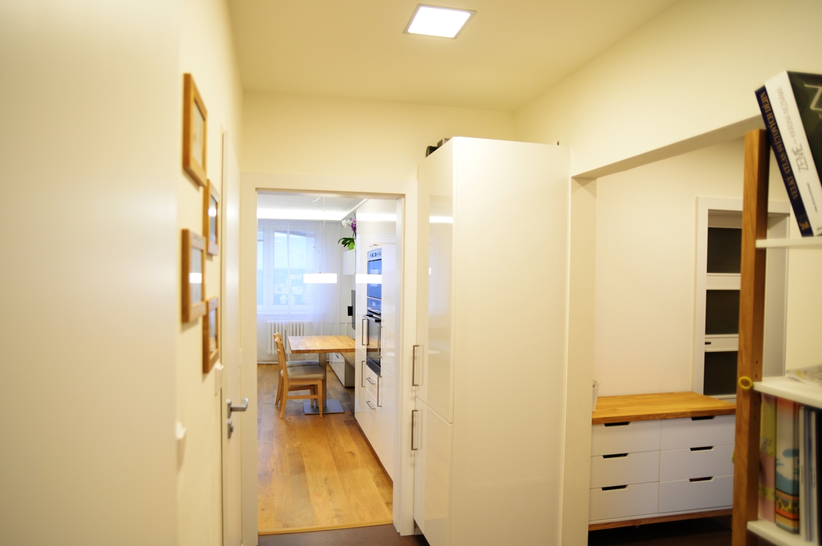 Změna dispozice z bytu 3+1 na 4kk v panelovém domě. Vizualizace a konzultace při realizaci.