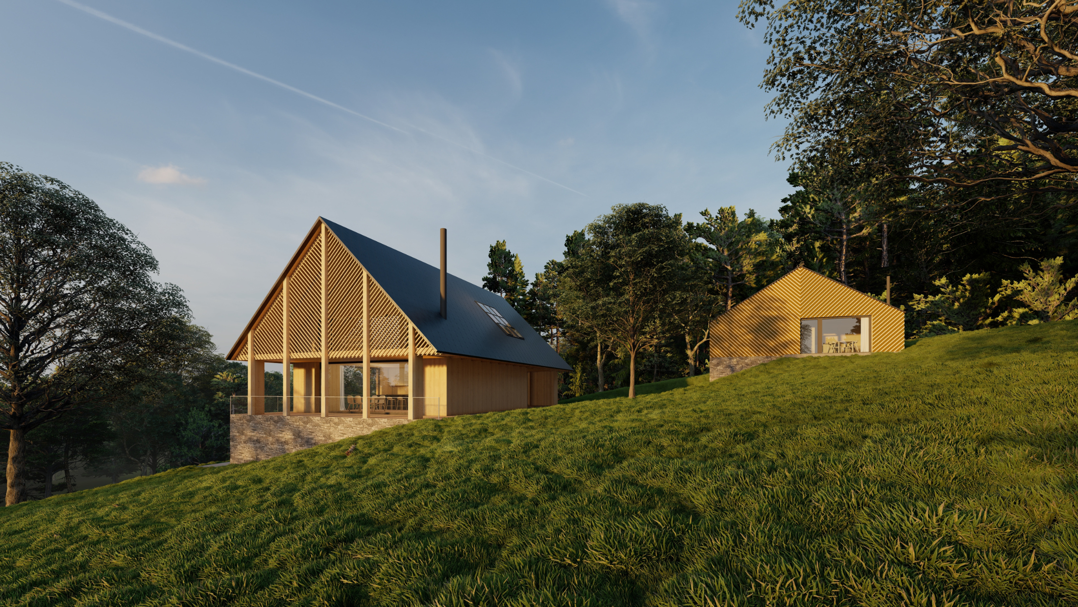 Uprostřed lesů u Jizerských hor vznikl návrh hájenky pro sezónní bydlení. Dům s moderním rázem, který však zároveň respektuje historický odkaz dané lokality, nabízí daleké výhledy do lesů a otevřené krajiny na místě, kde se snoubí samota a klid.