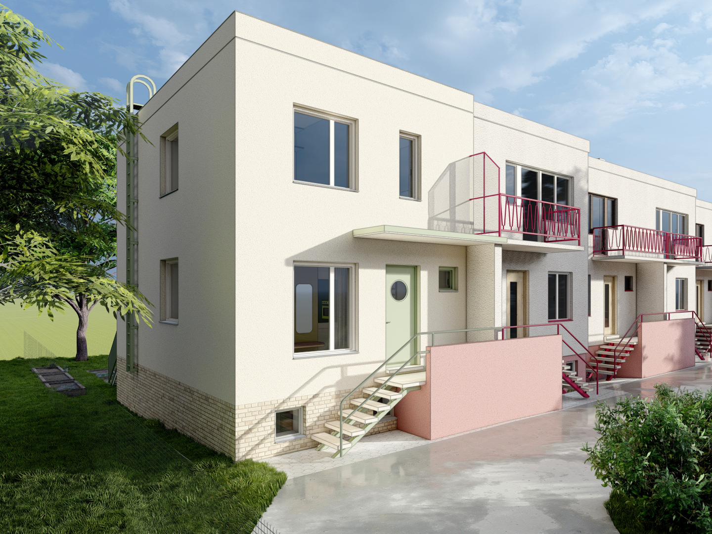 Obálka domu bude zateplena a upravena tak, aby dům při bližším pohledu zaujal svou kultivovaností v kontextu okolní zástavby, ale nijak zvlášť na sebe nestrhával pozornost.